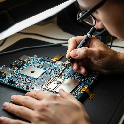 La carte mère est le cœur de votre iPhone, iPad ou Mac. Lorsqu’elle est endommagée, de nombreuses pannes complexes peuvent survenir : plus d’image, iPhone qui ne s’allume plus, composants grillés, connecteurs cassés, etc.